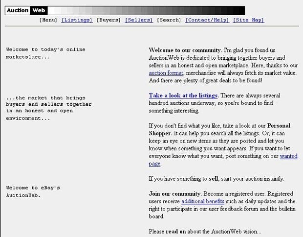 So why was something seemingly so obvious so non-consensus? Well, the early days of eBay were very crude. For example, here is their website in 1997, the year Benchmark invested (with its former name - AuctionWeb):